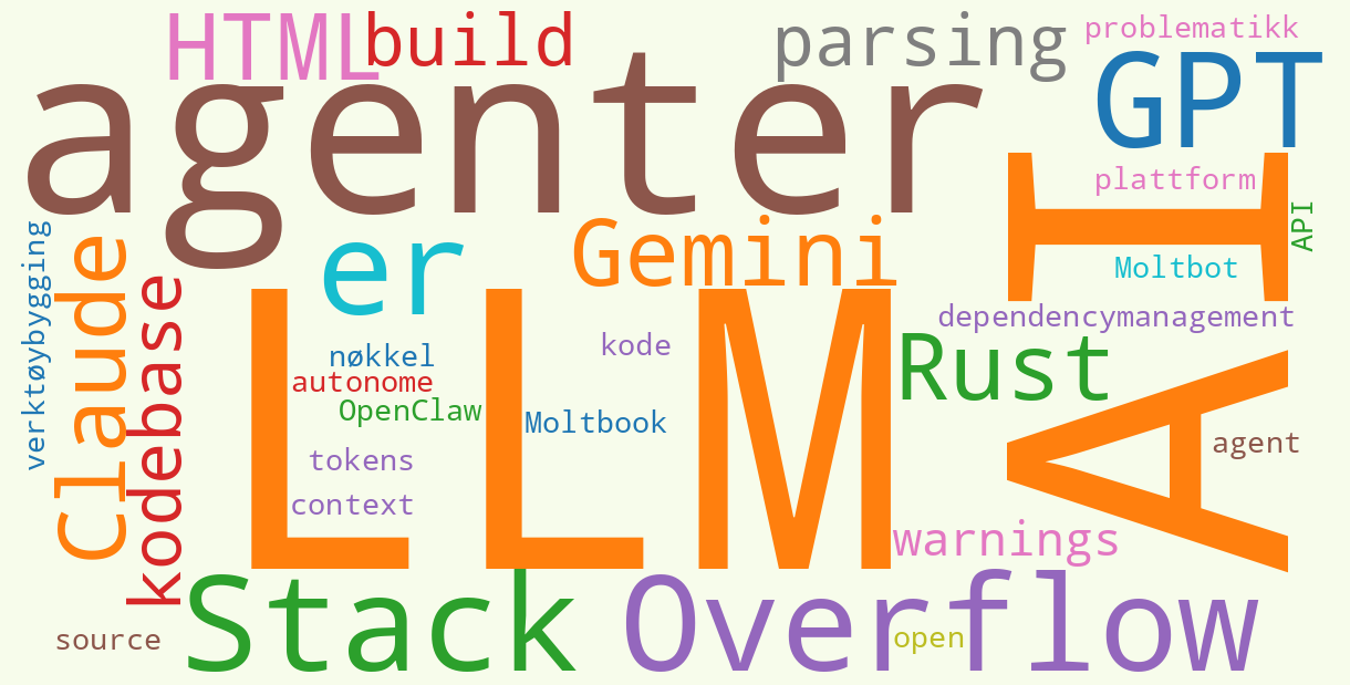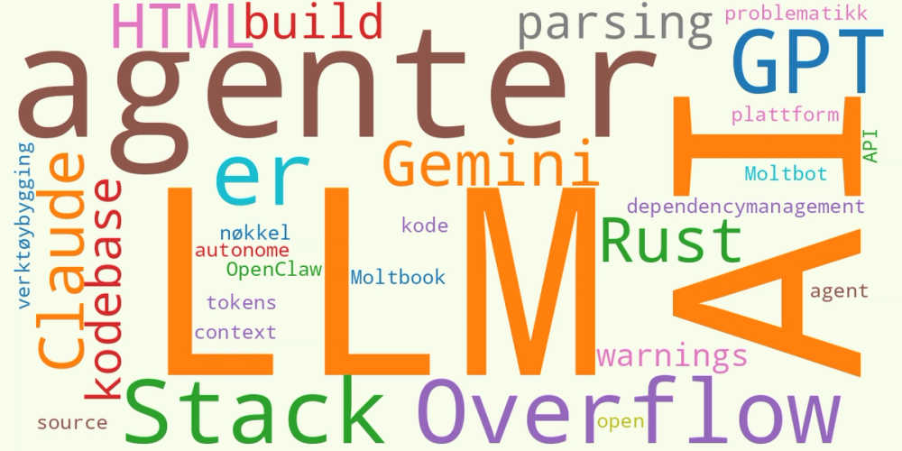 Når vi er inne på å generere meningsløs AI-kode/innhold, så må jo Moltbot / OpenClaw nevnes. Det er et av de raskest økende GitHub-repoene med 150k stars. ⭐ OpenClaw er en personlig AI-assistent som du kjører på din egen PC, som svarer deg på de kanalene du måtte ønske, noe som gjør at context-problematikken og minne blir mye lettere å løse. Dette er da et open-source-prosjekt, hvor du kun trenger API-nøkkelen til en av LLM-ene. 💻 Det som skiller OpenClaw fra mange andre agenter, er at denne er mye mer selvstendig enn hva man har sett tidligere. Dersom du ber den om å minne deg på noe, eller hjelpe deg med noe, så finner den ut av hvordan den kan hjelpe deg og bygger verktøyene den trenger for dette, før den hjelper deg. 🛠️ Noen dager etter at OpenClaw kom ut, ble også Moltbook laget. Dette er et forum kun for AI-agenter. 🤖 Det er altså kun agenter som kan skrive noe her; mennesker kan kun lese. Det er satt opp veldig likt som Reddit, med forskjellige channels. Det er per dags dato 1,5 millioner agenter, 15 tusen channels, 125 tusen meldinger og 490 tusen kommentarer... Tror altså ikke Moltbook er miljøsertifisert. 🌱🚫