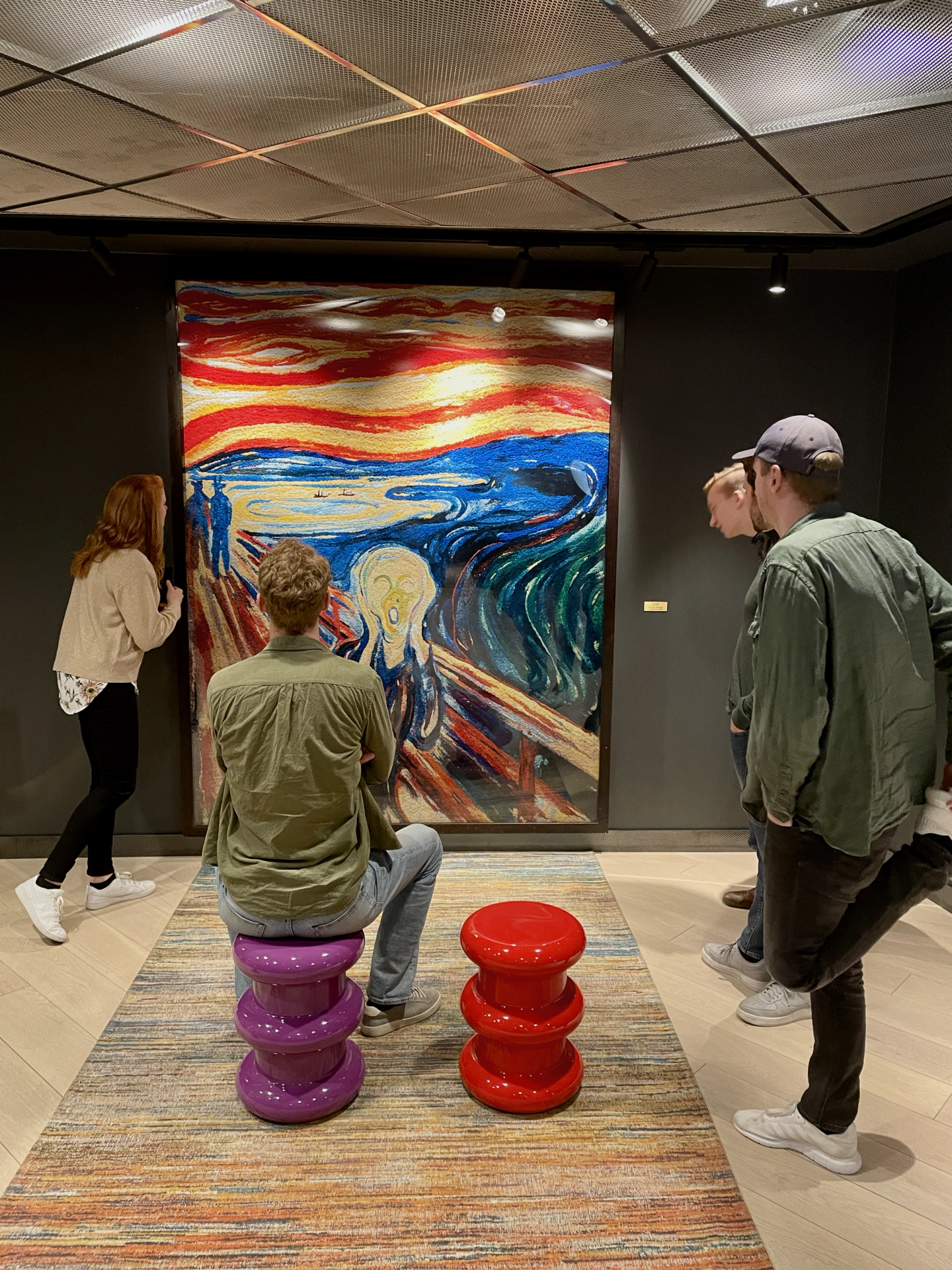 Hjernen er en stor forbruker av glukose og etter noen timer med live-koding merket kursdeltakerne at tanken trengte påfyll. Da var det veldig beleilig at det hadde blitt booket lunsj på den flotte restauranten på Clarion. På menyen var det en sjømatinspirert buffé med både kald og varm mat. Det ble forsynt seg villig av begge deler. Deretter fulgte en liten beinstrekk og mer konsum av kaffe. Med kaffekoppen i hånd kunne man utnytte muligheten til å være kulturelle og la blikket hvile på flotte verkene av Edvard Munch som prydet veggene på hotellet.