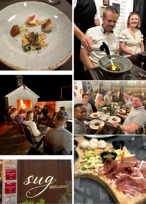 Det manglet ikke på matopplevelsene på turen da vi besøkte Michelinvurderte restauranter i byen og i huset hadde vår egen private kokk 🧑🍳 Menyene bestod av blant annet helgrillet lam, tunfiskfilet, and og mye annet godt - ofte med smak av trøffel 🤤 Og ikke minst alle de lokale delikatessene fra Dalmatia-området, da spesielt deres stolthet Oliven (i alle sine former), den dalmatinske prosciuttoen og lokalprodusert vin. 🫒🐖🍷 Sammensetningen av mat var omtrent like god som sammensetningen av folk. 🫶🏼